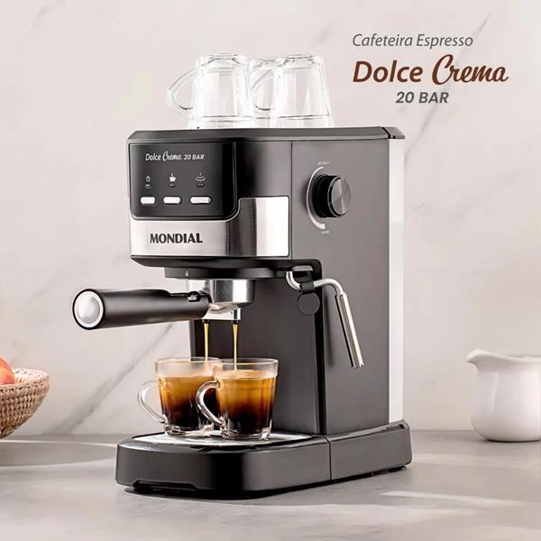 A Cafeteira Espresso Dolce Crema 20 Bar Mondial é perfeita para os amantes de um café encorpado e marcante. Com pressão de 20 Bar, ela extrai os sabores mais ricos e intensos do café moído, resultando em uma bebida cremosa e cheia de aroma. A Dolce Crema oferece versatilidade, permitindo a preparação de uma variedade de bebidas à base de café, desde espressos curtos e encorpados até lattes e cappuccinos cremosos. Além disso, a cafeteira também é compatível com adaptadores para bebidas de cápsulas, que são vendidos separadamente.