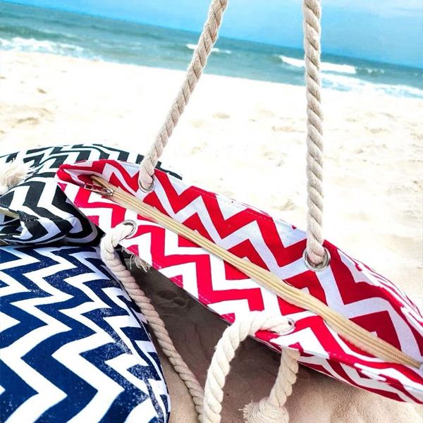 Que tal levar esta bolsa de praia de excelente qualidade? As listras estão super em alta. Ela é fácil de limpar, espaçosa, e nela você consegue levar sua canga, óculos, nécessaires com cosméticos, carteira e até mesmo sua viseira e chapéu.
