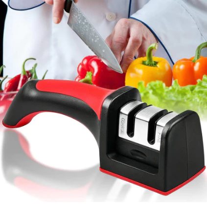 Tenha suas facas sempre afiadas e prontas para o uso com o Afiador de Facas Profissional 3 em 1. Prático, ergonômico e eficiente, ele é ideal para quem busca precisão no corte e durabilidade das lâminas, sem esforço e com total segurança.